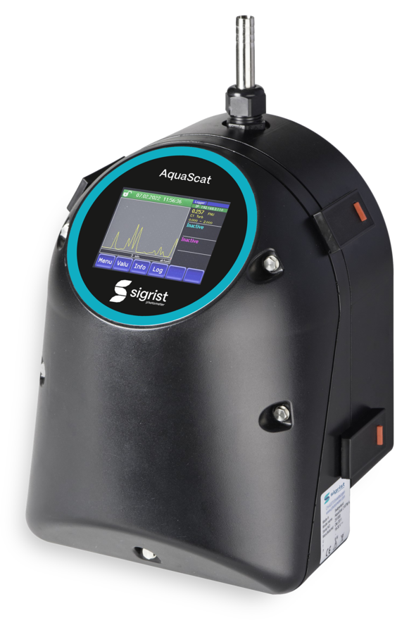 AquaScat根据IEC 27027标准,在自由落水的水流中测量饮用水的浊度。其非接触式设计消除了窗口结垢问题,并最大限度减少了维护需求,这一点在高浊度(HT)中尤为重要。校准检查使用带有玻璃参考标准的校准装置进行,检查时将其安装就位即可。